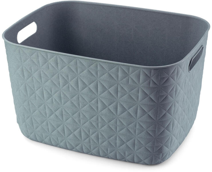 Praktikus doboz, különböző tárgyak tárolására, stílusos, steppelt szövetre emlékeztető kialakítás, 70%-ban újrahasznosított anyagok, egymásra rakható, fogantyúk a hordozáshoz.