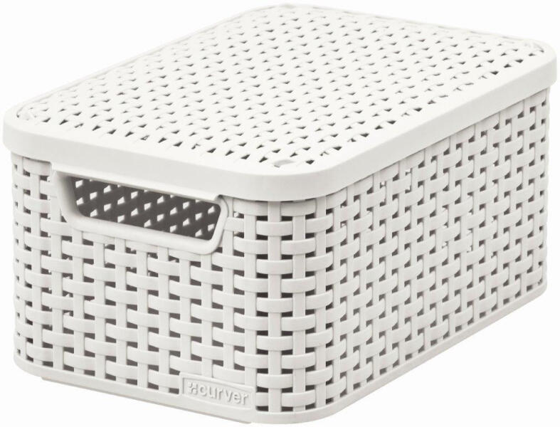 A Curver Style S fehér színű doboz 70%-ban újrahasznosított műanyagból készült. A 6 literes doboz praktikus fedéllel rendelkezik. Akár egymásra is rakhatja őket . Közvetlenül a fedél alatt a rövidebb falakon két lyuk található, amelyek ideálisak a szállításra . A praktikus, kifinomult rattan utánzatdoboz segít rendet tartani otthon, a műhelyben vagy akár a kertben is. Tulajdonságok