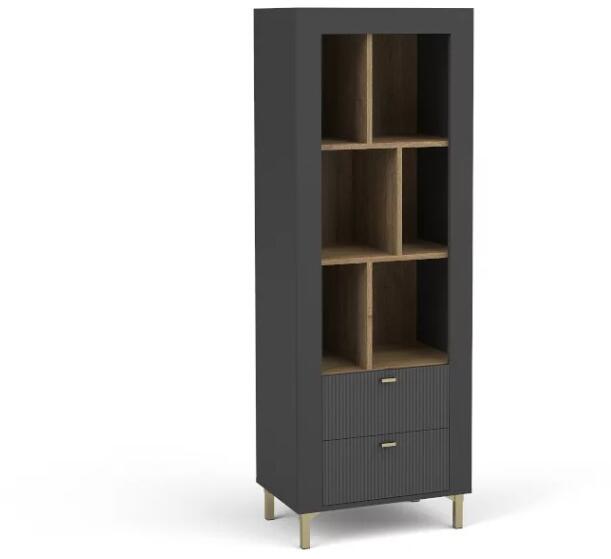 Polc MORASS MO4 | fekete Hiányzik otthon a tárolóhely, ugyanakkor vágyik olyan bútorokra, amelyek felpezsdítik és megszépítik a belső teret ? Ez a stílusos MORASS MO4 polc a modern megjelenést a funkcionalitással ötvözi, így praktikus és esztétikus kiegészítője a nappalinak. A MORASS polc azonnal megragadja a tekintetet az ajtón lévő eredeti benyomott felületével , amely sajátos karaktert ad neki. A polc kellemes fekete színű, whisky tölgy árnyalatú kombinációval. laminált 16 mm ABS él műanyag A polc felső lemeze, belső részei és válaszfalai MORASS MO4 | A fekete kiváló minőségű és tartós laminált anyagból készül , amely garantálja a hosszú élettartamot és a sérülésekkel szembeni ellenállást . A bútorok ABS élekkel rendelkeznek - biztosítják, hogy ne leváljanak és ne deformálódjanak , így a bútorok hosszú távú használat során is tökéletes állapotban maradnak. A 12 cm magas műanyag lábak stabilitást biztosítanak, ugyanakkor lehetővé teszik a bútorok alatti könnyű tisztítást. A fogantyúk