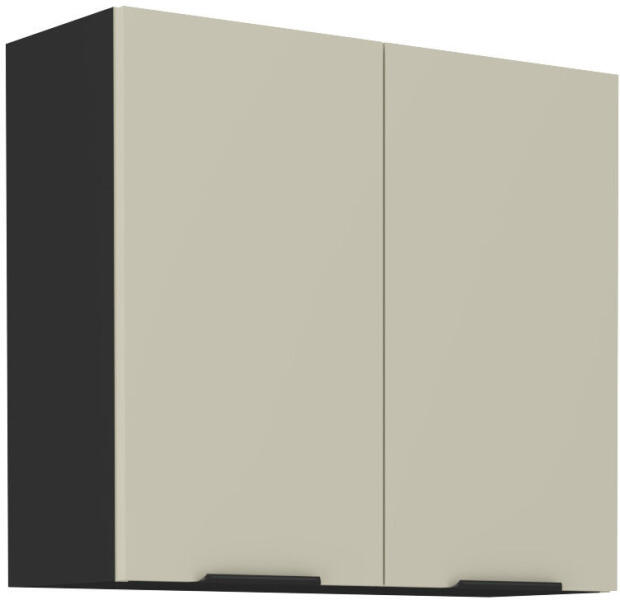 ARAKA 80 G-72 2F Felső Szekrény - Kasmír és Fekete Elegancia a Konyhádba! ? Az ARAKA 80 G-72 2F felső szekrény tökéletes választás, ha modern és stílusos konyhát szeretnél. A kasmír színű ajtók és a fekete matt korpusz kombinációja elegáns megjelenést kölcsönöz, miközben praktikus tárolási megoldást kínál. Főbb Jellemzők:Anyag: Laminált DTD (faforgácslemez) Színek: Ajtók: Kasmír Korpusz: Fekete mattMéretek: 80 x 31 x 71,5 cm (Szélesség x Mélység x Magasság) Anyagvastagság: 1,6 cm Kialakítás: Kétajtós Polcos belsőFogantyúk: Alumínium színű Dizájn: Modern Extrák: Csendes ajtózáró rendszer További Információk: A szekrény lapraszerelve kerül kiszállításra. Az alsó szekrényeket az alsó sínnel együtt szállítjuk, asztallap nélkül. Kiegészítők (külön megvásárolható): Roma márvány munkalap (31 500 Ft/fm) LAY ON univerzális mosogatóEz a felső szekrény nem csak praktikus tárolást biztosít, hanem a konyhád dísze is lesz. A csendes ajtózáró rendszer pedig a kényelmes használatot garantálja. ✨